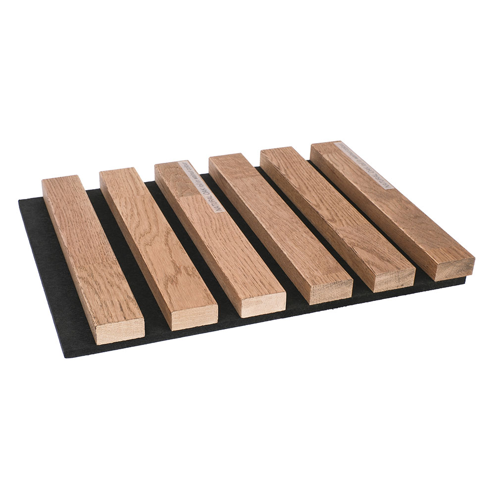 Hochwertige Akustikpaneele aus 100% massivem Eichenholz und recyceltem PET-Filzgewebe. Hergestellt in der EU für beste Qualität. Wir verzichten auf minderwertige Lösungen wie beklebtes MDF oder preisgünstigem Holzfurnier. Unsere umweltfreundlichen Paneele bieten einzigartige Optik und schaffen ein gesundes Wohnumfeld.